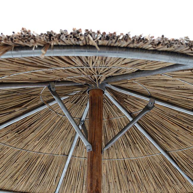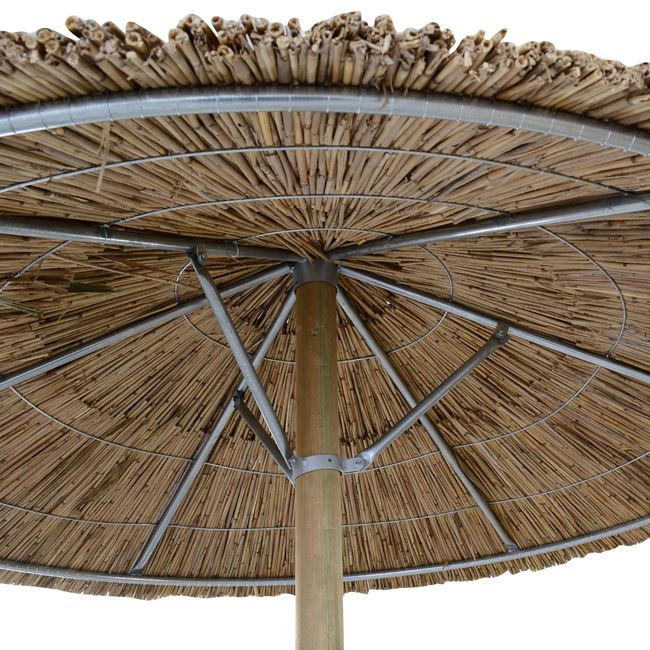 Ομπρέλα ψάθινη Φ250εκ. με 3 δεσίματα, 6 ακτίνες και 3 αντηρίδες.